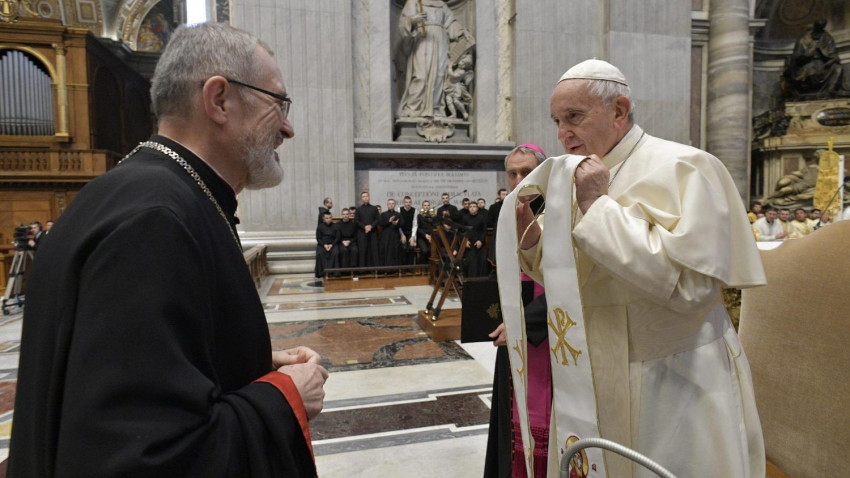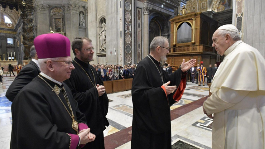 Ferenc pápa hálát adott Istennek, amiért a szovjet rezsim hosszú elnyomása után az Úr végtelen jóságában felszabadította a helyi egyházat, mely sok vértanút adott a világnak, akik életük árán vallották meg hűségüket Krisztus, a Katolikus Egyház és Róma püspöke iránt – fogalmazott a Szentatya. Közülük is kiemelkedik Boldog Romzsa Tódor vértanú püspök, aki az egyházmegye történetének egyik legsötétebb pillanatában képes volt evangéliumi bölcsességgel és bátorsággal vezetni Isten népét. Fáradhatatlanul követte Krisztus, a Jó Pásztor példáját, aki életét adta juhaiért – mondta a zarándokoknak a pápa.