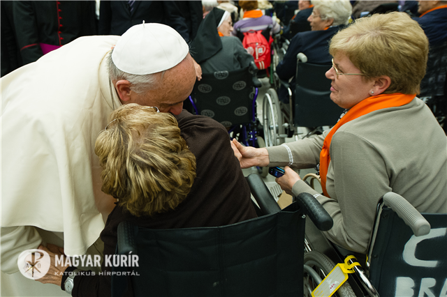Végül Ferenc pápa azt kérte a két szervezet önkénteseitől és a betegektől, hogy keresztjüket és szenvedéseiket hittel és szeretettel éljék meg Krisztussal együtt. Majd áldása előtt mindenkit arra hívott, hogy imádkozzanak Szűz Máriához. Ő ismeri a szenvedést, és mindig segít a legnehezebb pillanatokban.