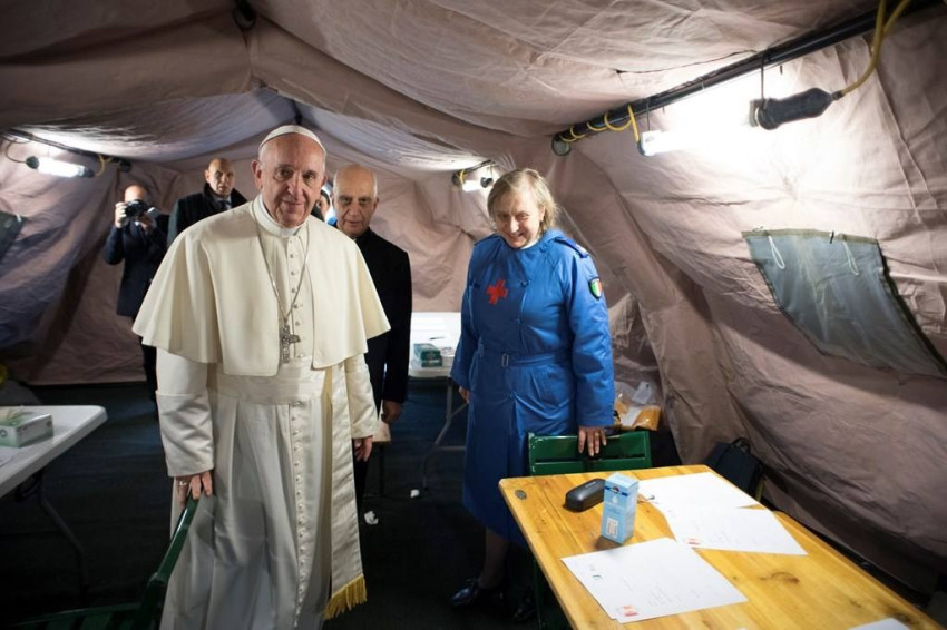 A Szentatya megtekintette a kialakított kis tábori kórházat a téren, továbbá köszöntötte az orvosi vizsgálatra várakozó szegények egy csoportját és az önkéntes orvosokat, akik ezekben a napokban ingyenes vizsgálatot biztosítanak a nehézségben élők számára, valamint a kisegítő személyzet tagjait is.