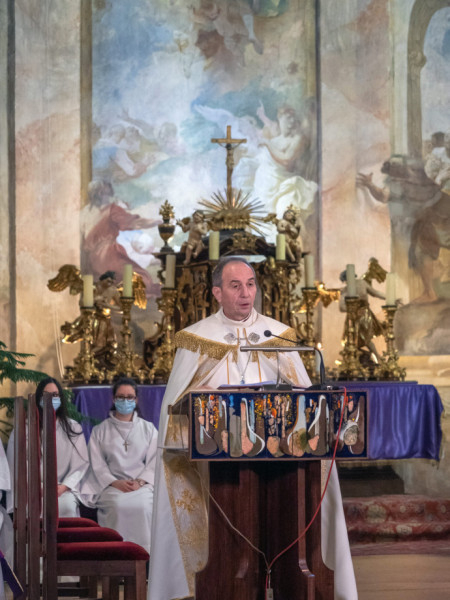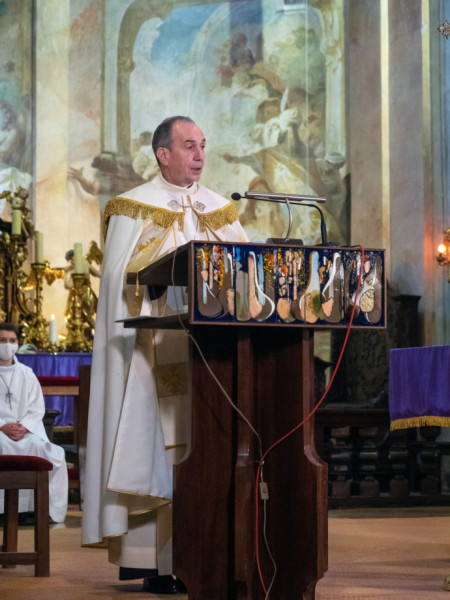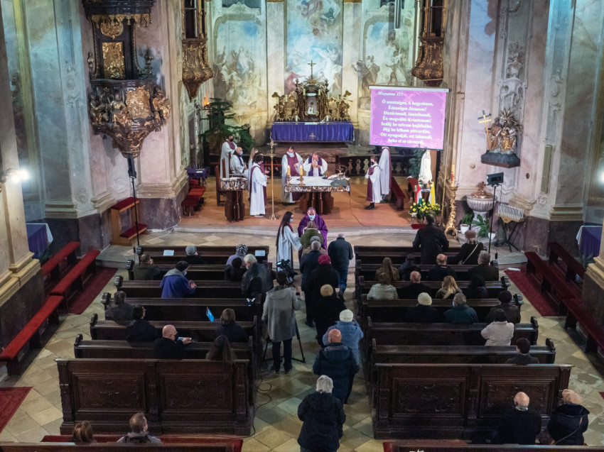 „Nagyböjti időt élük, megajándékoz bennünket az Egyház azzal, hogy jól tudjunk felkészülni húsvét ünnepére. Tartsunk őszinte bűnbánatot, imádkozzunk! Imádkozzunk megtérőkért, imádkozzunk azokért, akik ezen a húsvéton lesznek Krisztus ismerői és kötelezik el magukat a szentségekben, és imádkozzunk saját magunkért, hogy fel tudjuk fedezni istengyermeki méltóságunkat!” – kezdte homíliáját a veszprémi érsek.