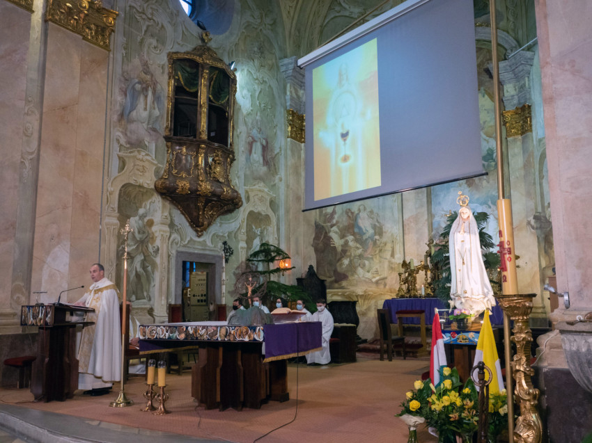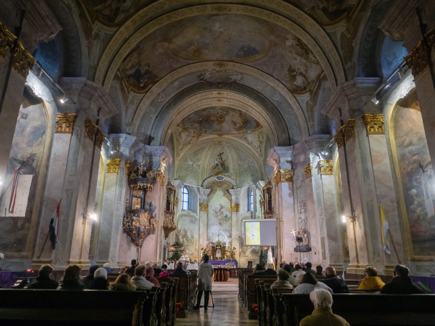 A sümegi plébániatemplomban szentségimádással kezdődött az elsőcsütörtöki szertartás. Udvardy György érsek a szentírási szakaszok kapcsán három gondolatot osztott meg a jelenlevőkkel – és az imádságba az élő közvetítésnek köszönhetően bekapcsolódókkal.
