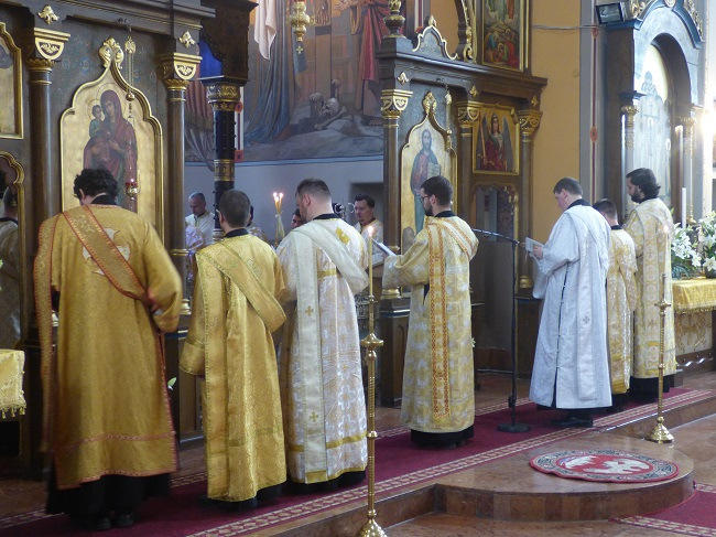 Az Atanáz püspök mellett asszisztáló papok között hét szentelésre váró diakónus szolgált együtt, köztük Csaba testvér. A főpásztor mindannyiukhoz szólva kérte, hogy „mindazok, akik megbízatást kapnak az egyházi rend szolgálatára, mindazok, akik a Szentlélek kegyelmét kapják vigasztalásra, másokért is tegyenek szolgálatot”, példaként állítva eléjük a nemrégen boldoggá avatott görögkatolikus püspökök életét, kiknek ereklyéivel gazdagodott a miskolci székesegyház.