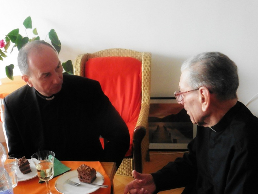 Az otthonban aktív és rendszeresen miséző pap interjú keretében beszélt életéről. Felidézte azt az időszakot, amikor a jezsuiták által működtetett Pius gimnáziumba járt, az 1944-es orosz megszállást és az 1945-ös érettségijét, s hálával emlékezett arra, hogy őt személyesen – kispapként, majd felszentelt papként – a Rákosi-korszakban nem érte üldöztetés. A papi szemináriumi évekből az atya szép emlékeket őriz, noha abban az időszakban sokat nélkülöztek, gyakran volt hiány ételből – emiatt kétszer is tartottak téli szünetet, mondta el.
