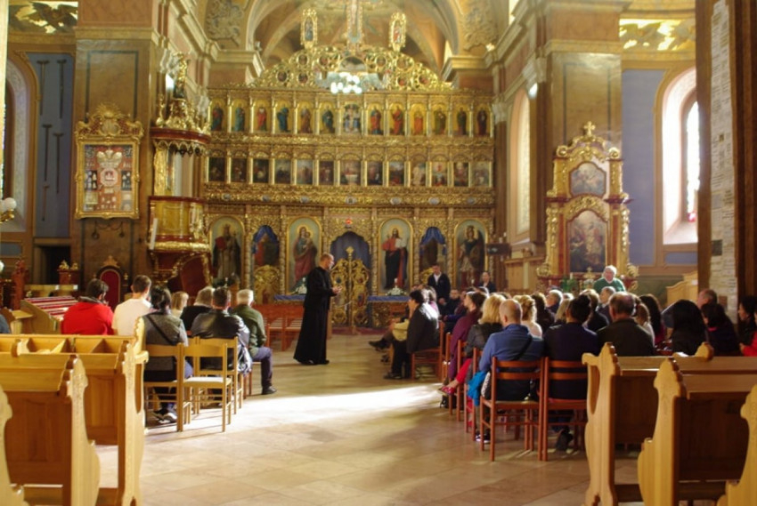 Az érettségizők többsége még sosem járt a nemzeti kegyhelyen, velük Pindzsu István ismertette a kegykép és Máriapócs történetét.