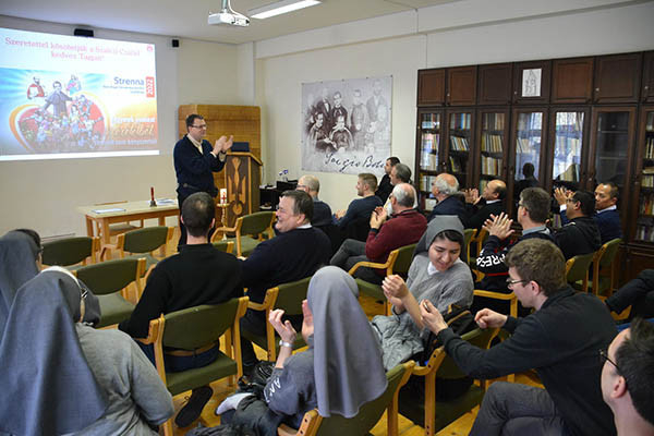 „Szaléziak vagyunk. Ti is – mi is” – kezdte előadását Bángi-Magyar Attila, a szalézi munkatársak koordinátora, aki a Szalézi Család tagjainak igyekezett képet adni a magyar szalézi munkatársak jelenlegi helyzetéről és terveiről. Szót ejtett arról is, milyen helyet foglal el ez a csoport a Szalézi Családban és milyen együttműködési lehetőségek vannak, illetve lehetnének még a szerzetesi család többi ágával.
