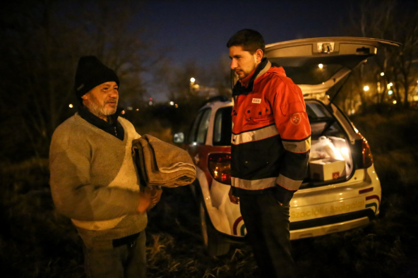A budai Feszty Árpád utcában, a szervezet diszpécserközpontjának és utcai gondozószolgálatának helyiségében találkozunk. A telefon egyfolytában szól. Hatott a felszólítás, hogy aki közterületen ülő-fekvő embert lát, jelentse be. – Gyakori, hogy ugyanarra a személyre több telefonáló is felhívja a figyelmet – mondja a diszpécser, Andó Nikoletta. – Az illetőt nemegyszer már ismerik a szolgálat munkatársai. Tudnak róla, számon tartják. Ez a legfontosabb. Például tudják, hogy nem akar szállóra menni, mert tegnap már jártak nála. A perdöntő az, hogy a kapcsolat megvan, hogy ismerik a tartózkodási helyét, és újra meg újra felkeresik, teáztatják, elmondják neki, mennyire aggódnak érte, ezekben a napokban különösen is. Ha ezt tudja, adott esetben könnyebben dönt a szállásra húzódás vagy orvoshoz fordulás mellett, amiben szintén segítségére lehetnek a szociális munkások. A szeretetszolgálat mozgó orvosi rendelője azért járja a várost, hogy helybe vigye a segítséget, legyőzze a nagy távolságot, amely a hajléktalan emberek és az orvosok között a hétköznapokban általános. A távolság sokszor bizalmatlansággal is együtt jár, akár mindkét oldalról is. Az itt szolgáló orvosok viszont éppen azoknak akarnak segíteni, akiken legtöbbször senki sem segít.