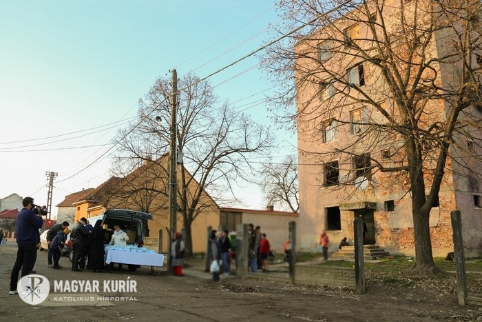 Ezt követően Schönberger Jenő püspök áldásával ételosztásra indultak a segélyszervezetek munkatársai és önkéntesei: az egyházmegyei karitász tagjai a 14-es lakónegyedbe, a Neajlov sétányra; a Máltai Szeretetszolgálat szatmári csoportja az Ostrovului utcai szociális tömbházakhoz; az egyházmegyei kórház-pasztorációs iroda munkatársa, a piarista nővérek, a pasztorális iroda munkatársai, a plébániai szeretetszolgálati tagok és az egyházmegye börtönlelkészséggel megbízott papja pedig a Ion Ghica utcai szociális tömbházakhoz.