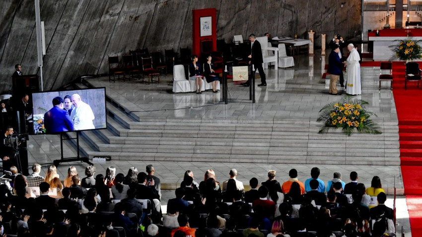 Apostoli utazásai során Ferenc pápa programjából soha nem hiányzik a jövő társadalmának építőivel való találkozó. Japánban erre hétfőn, látogatása utolsó előtti napján került sor a Szűz Mária tiszteletére szentelt tokiói székesegyházban. A találkozó szokás szerint tanúságtételekkel kezdődött. A Japánban élő fiatalok kulturális és vallási különbözőségének megfelelően egy katolikus, egy buddhista és egy migráns fiatal számolt be legmélyebb félelmeiről és vágyairól.