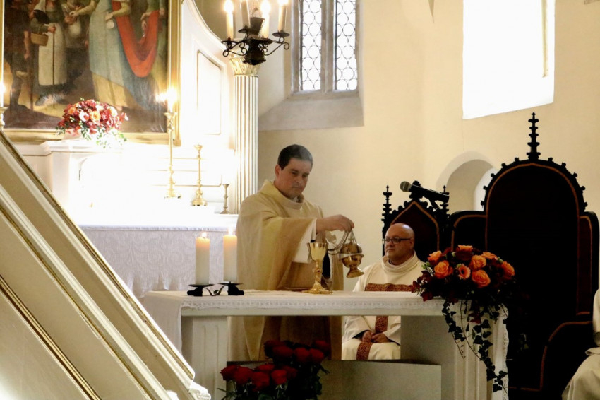 A főcelebráns, Jánossi Imre segédlelkész ünnepélyesen megáldotta a szeretet és a gondoskodás jelképeit, a rózsákat és az oltárasztal elé helyezett péktermékeket, majd Janó Kinga zenepedagógia szakos egyetemista elénekelte a Panis angelicust.