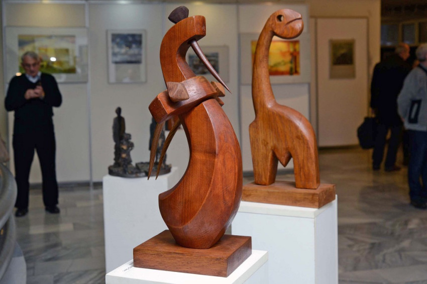Az előtérben Vanyúr István Madár és Dínó című alkotása