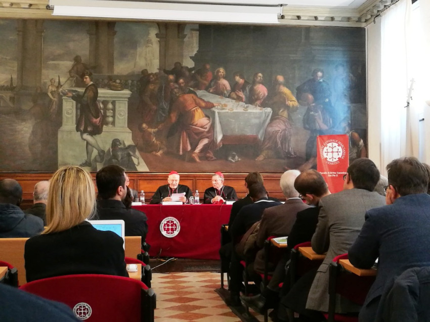 A velencei patriarkátus szemináriumában tartott rendezvényen Erdő Péter A kánonjog teológiai értéke: egy történeti kérdés címmel tartott előadást. A Dies Academicuson a magyar prímáson kívül felszólalt még Francesco Moraglia velencei pátriárka és a kánonjogi intézet elnöke, Giuliano Brugnotto.