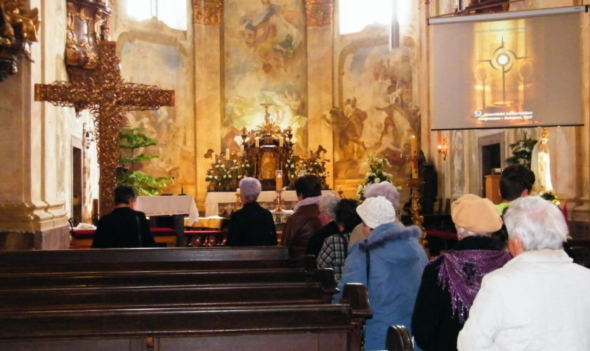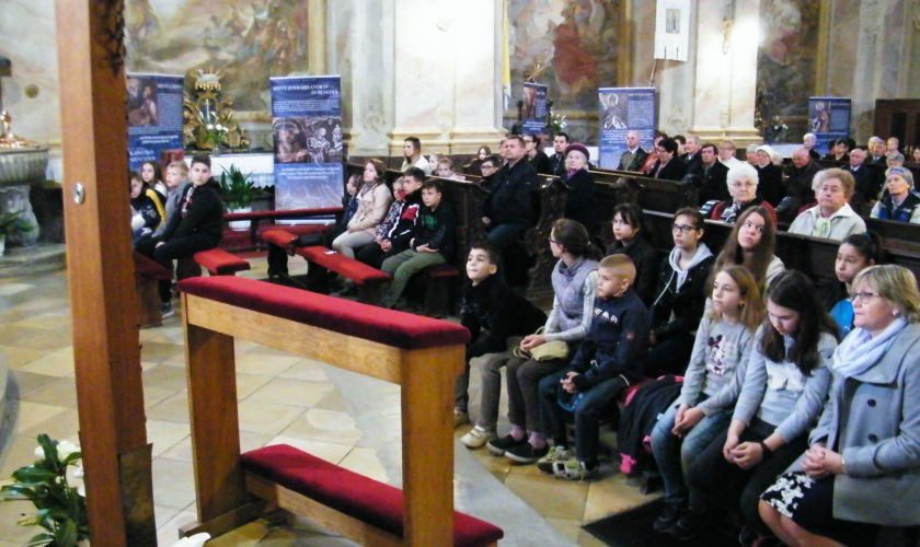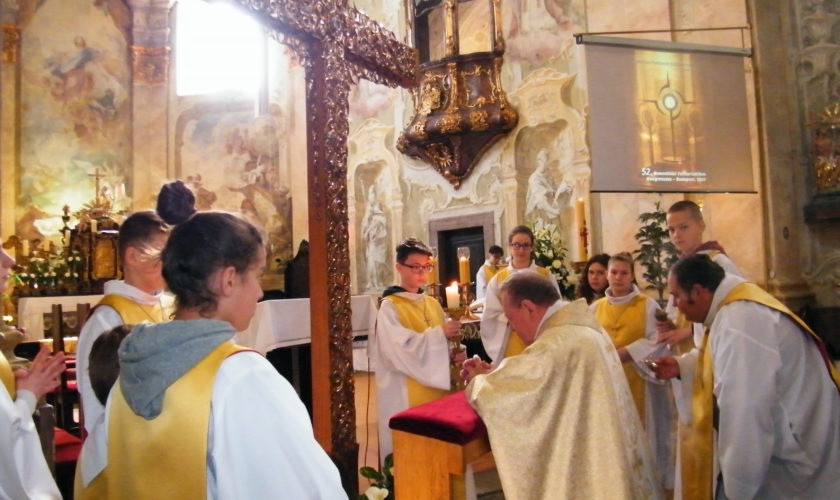 Az esti szentmise résztvevői szintén kifejezték hódolatukat a kereszt előtt.