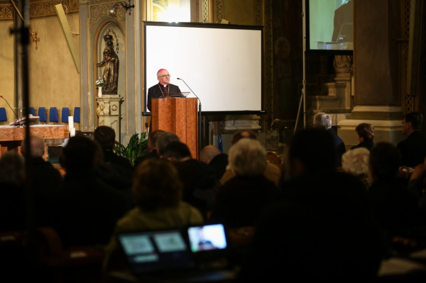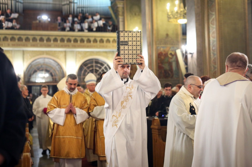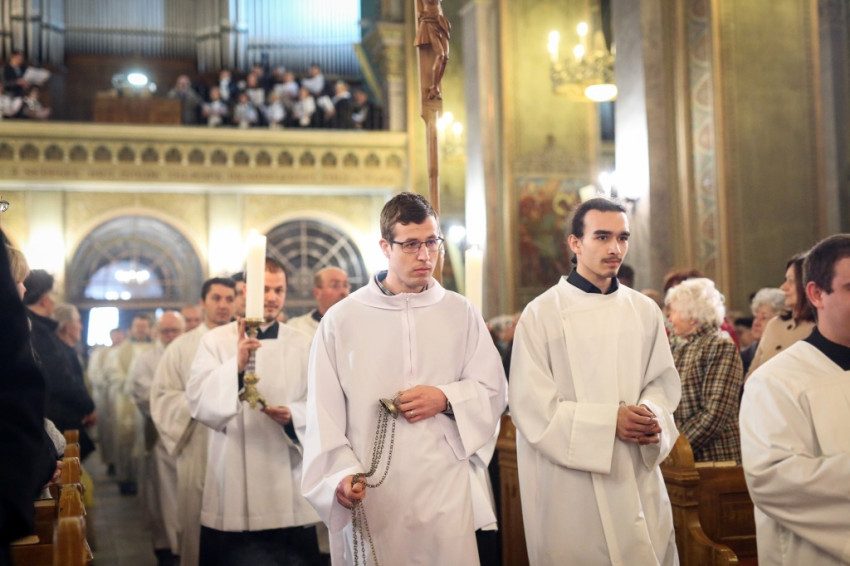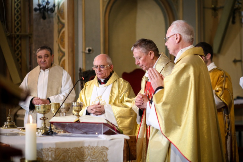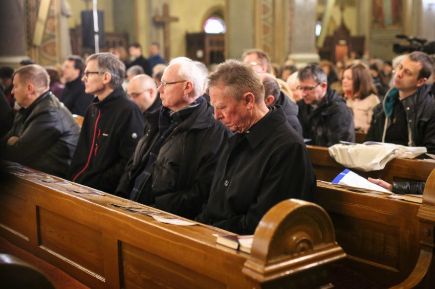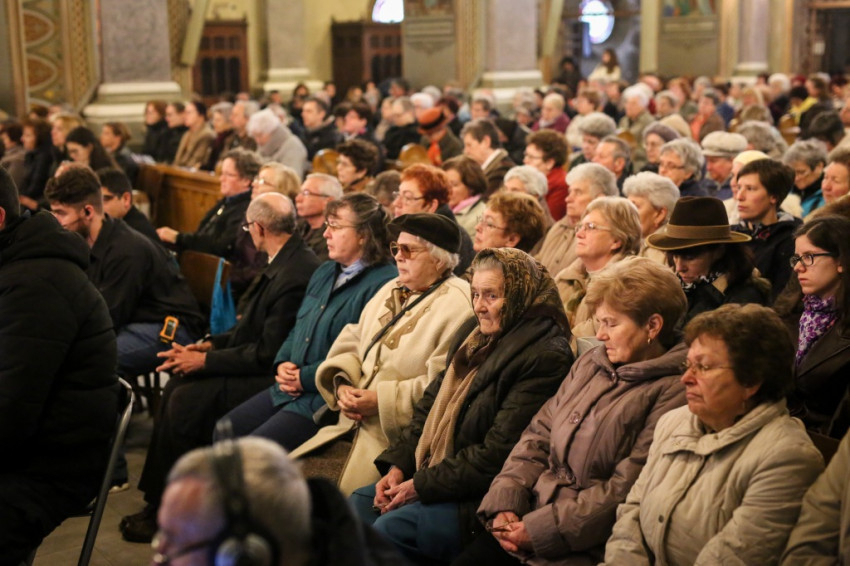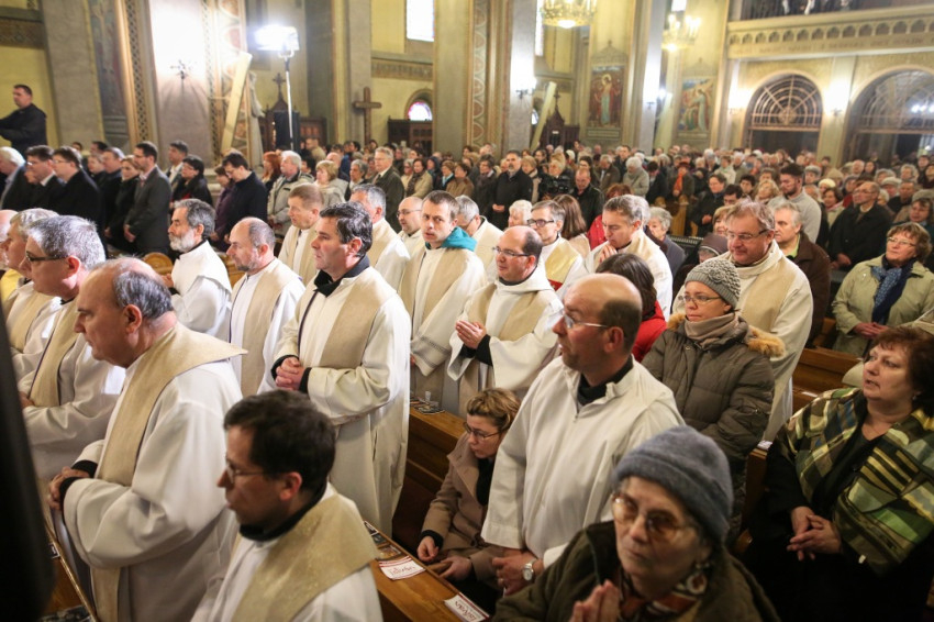 A mise főcelebránsa Beer Miklós, és itt van segédpüspöke, Varga Lajos is. A megjelenteket a házigazda, Varga László üdvözli. A váci püspök megemlíti: ez az első alkalom, hogy Katona István nyugalmazott egri segédpüspök, az irgalmasságnak szentelt konferenciák kezdeményezője-apostola egészségi állapota miatt nem lehet jelen. „De lélekben bizonyára velünk van ő is” – teszi hozzá.