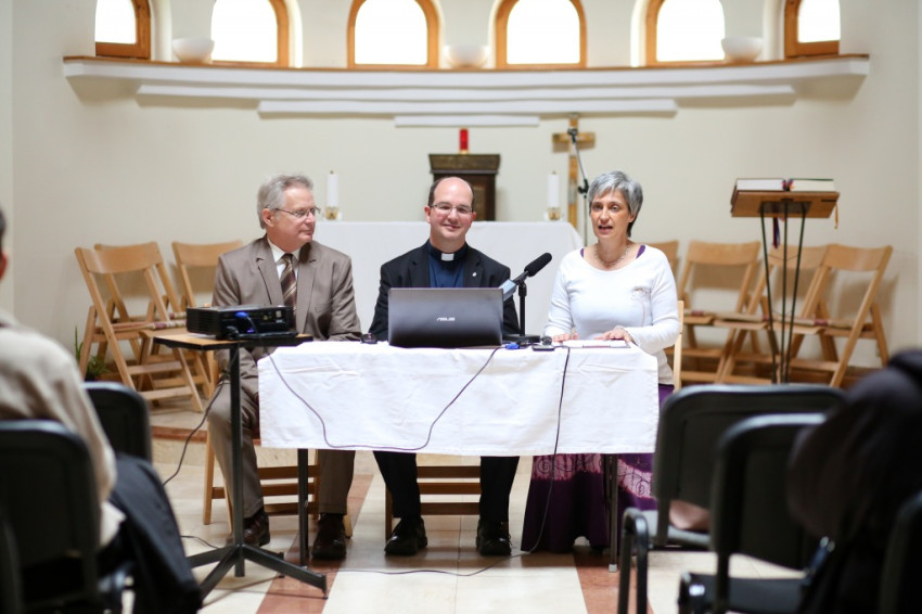 Ebédszünet, majd különböző helyszíneken beszélgetések következnek, a többségük az irgalmasság cselekedeteiről, például a hajléktalan emberek, a börtönben levők, a gyászolók, a sérültek segítéséről szól. Mi a körkápolnában rendezett, a Tartós házasság, erős gyerekek: a prevenció útjai a családban című programot választjuk, amelynek a Radnai házaspár és Nyéky Kálmán az előadói.