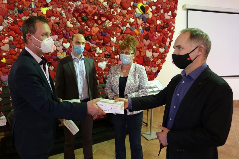 Az adományt Szlávik János és Lakatos Botond, a Dél-pesti Centrumkórház infektológus főorvosai, valamint Pataky Zsuzsanna, az alapítvány kurátora adta át Vecsei Miklós társadalmi felzárkózásért felelős miniszterelnöki biztosnak, a Magyar Máltai Szeretetszolgálat alelnökének március 4-én, Budapesten.