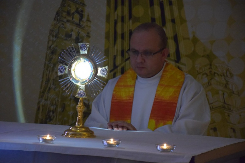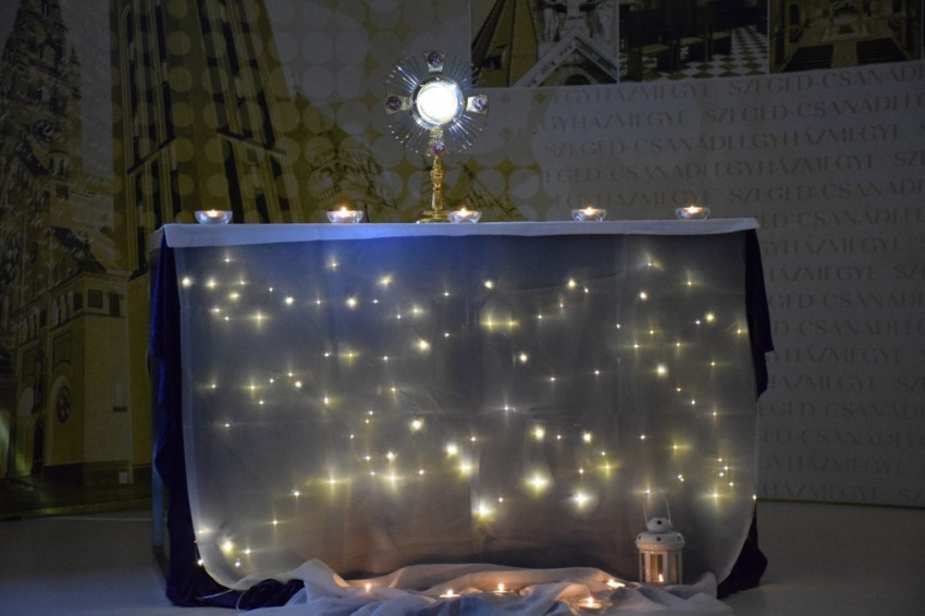 Az imaalkalom során Nagy Róbert szőregi plébános tartott elmélkedést, aki arra biztatta a jelenlévőket, hogy merjenek Istenre nézni, mert Ő az, aki a legmélyebben ismeri az embert. „Ő kimondja a nevem, és így a szentségimádásban párbeszéd jön létre közöttünk. Csendes, személyes és a legmélyebb bizalomban megélt imádság” – tanított a plébános.