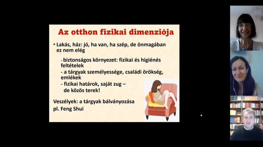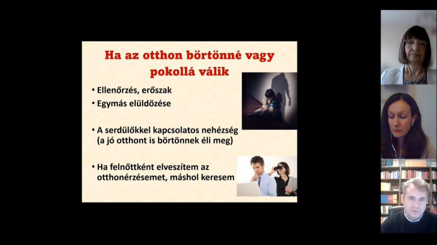 Az előadáson szó volt arról is, hogy az otthon sajnos pokollá is tud válni. A túl erős kontroll alól menekülnek a serdülők, de a házastárs is. A kényszeres renddel szemben máshol keresik a lazulást. Érdemes őszintén feltenni magunknak a kérdést, mit tehetnénk azért, hogy ne váljon pokollá az otthonunk, s ez az őszinte szembenézés a „menekülők” számára is fontos volna.