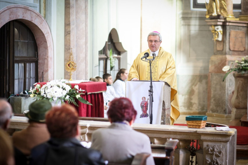 Amint arról már korábban beszámoltunk, az óvári templom felszentelésének 350., védőszentje halálának 980., valamint a hildesheimi szent csontereklyéje elhelyezésének 10. évfordulójára február 11-én jubileumi évet hirdettek, amely november 25-ig, Krisztus Király vasárnapjáig tart. A Szentszék ebből az alkalomból dekrétumot bocsátott ki, melyben engedélyezte, hogy Veres András püspök – a szokásos feltételek mellett – teljes búcsút adó pápai áldásban részesítse a szentmisét hallgató hívőket. Ez a jelenlévőkre, a Kossuth és a Magyar Katolikus Rádió hallgatóira, illetve a Bonum Televízió nézőire is vonatkozott.