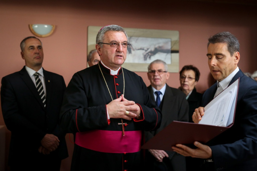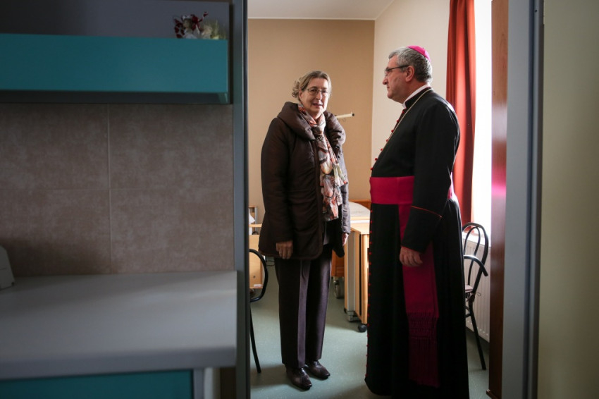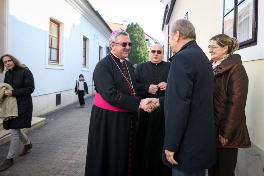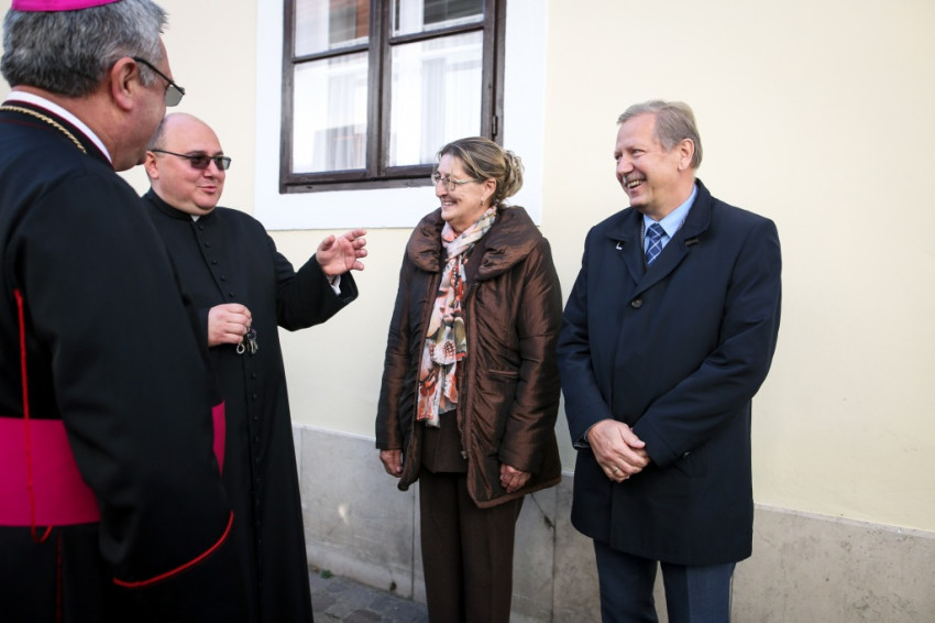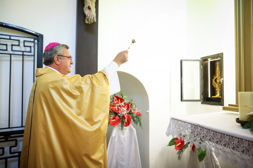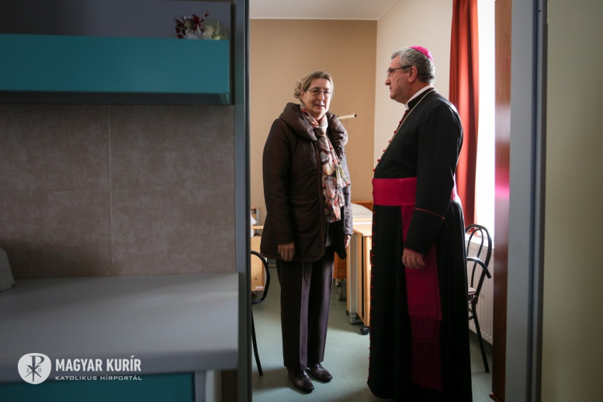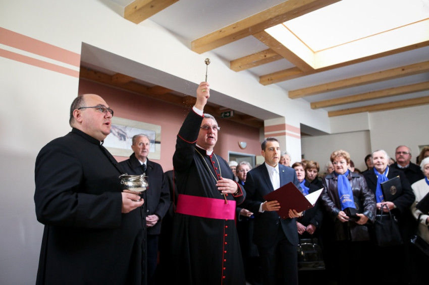 A szentmisét követően sor került a templom közelében kialakított hospice-ház megáldására. Ezen a helyen a múlt és a jelen, az ég és a föld összekapcsolódásának tanúja lehetett mindenki. Ma már a történelem ködébe vész, de a kis Szent László-kápolna melletti épület egykor szerzetes nővérek által vezetett ispotály volt. Ez a ház újult meg és lett a város, illetve az észak-dunántúli régió első, gyógyíthatatlan betegeket befogadó és ápoló intézménye. Ismét lehajolt az ég a földre. A jubileumi év február 11-én, a lourdes-i jelenések napján kezdődött, amikor Veres András püspök a betegekről, a haldoklókról, az idősekről prédikált. A november 11-i vasárnapon az adakozásról, a megosztásról tanított a főpásztor. A hospice-ház pedig hihetetlen összefogás, megosztás és adakozás eredményeként valósulhatott meg.