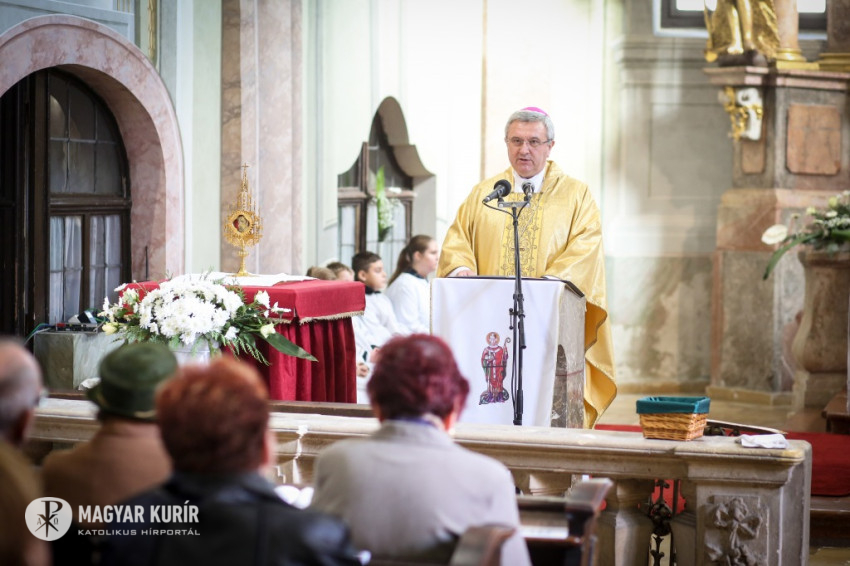 Veres András püspök arról is beszélt, hogy az anyagi javak birtoklása örömöt, sikert jelenthet. Vannak azonban olyanok, akiknek a nagy vagyon nem elég, és a sokból sem szívesen adnak a nélkülözőknek. Pedig a megosztás örömmel jár. Jó érzés sokat adni, de még nagyobb öröm, ha olyasmit tudunk adni, amire magunknak is szükségünk volna. Ez az adakozás legmagasabb foka, amire viszont csak kevesek képesek – mondta a főpásztor. – Isten nem várja mindenkitől, hogy a szegénységet válassza mint életformát, de arra mindannyiunknak szükségünk van, hogy anyagi javainktól bizonyos mértékben függetlenek tudjunk maradni – mindenki a saját életállapotának megfelelően. Ezért fontos, hogy mindenki átgondolja az anyagi javakhoz fűződő viszonyát. A lemondást, a megosztást már a gyerekekkel és a fiatalokkal is meg kell ismertetni, mert enélkül szegények lesznek egész életükben – hangsúlyozta Veres András püspök.