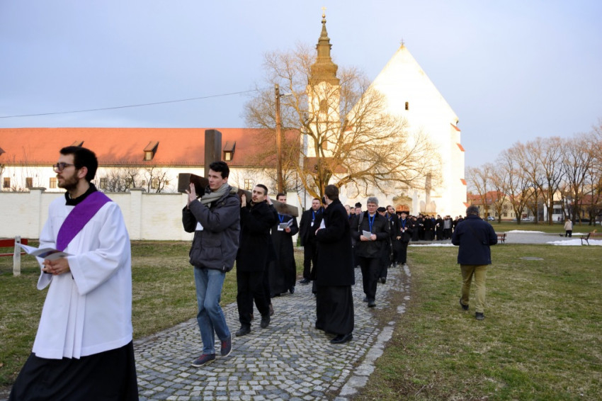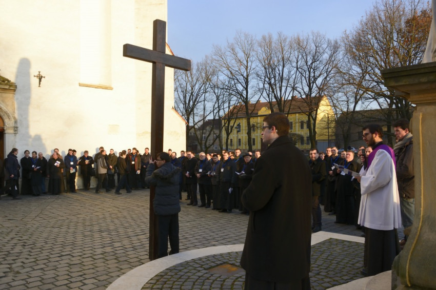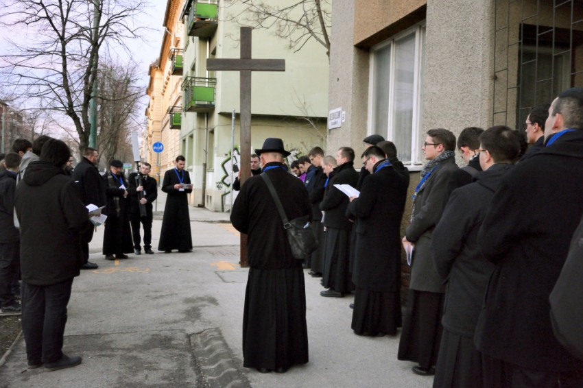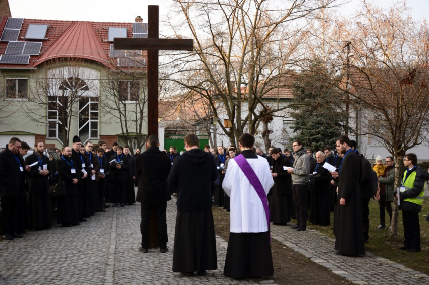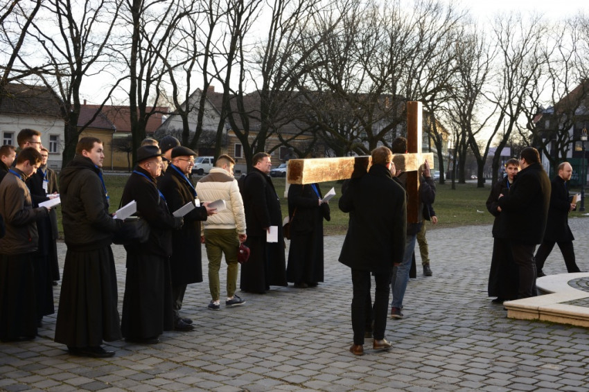 Az alsóvárosi ferences plébánián gyülekeztek a papnövendékek az ország kilenc szemináriumából, akikhez a Gyulafehérvári Római Katolikus Főegyházmegye papnevelő intézetéből is csatlakozott egy kisebb küldöttség. A résztvevők már ekkor megtöltötték a Havas Boldogasszonynak szentelt templomot, pedig a görögkatolikusok csak később, a keresztút közben érkeztek meg.