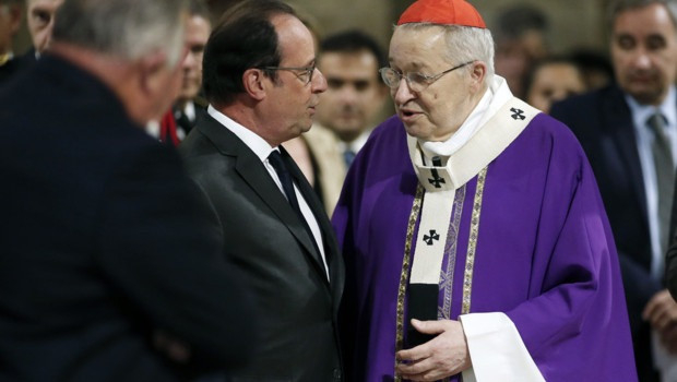 Rendkívül szigorú biztonsági intézkedések keretében zajlott a szertartás, amelyen a francia püspöki konferencia tagjai, a helyi politikai elit legfontosabb képviselői is megjelentek: ott voltak François Hollande jelenlegi, valamint Nicolas Sarkozy és Valéry Giscard d'Estaing korábbi államfők, Manuel Valls kormányfő, Gérard Larcher, a Francia Szenátus elnöke, Claude Bartolone, a Nemzetgyűlés elnöke.