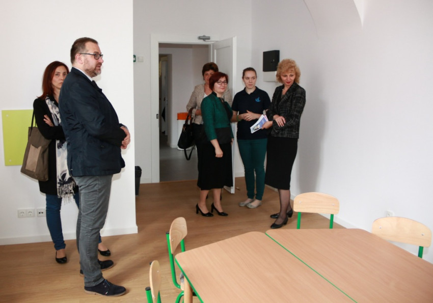 A központ vezetői, a támogatók és a partnerek átvágták a szalagot, majd röviden ismertették a felújítás eredményeit.
