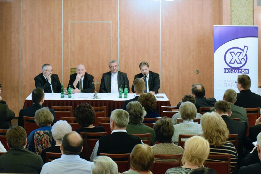 A köszöntőket követően pódiumbeszélgetés kezdődött Békefy Lajos református teológus, közíró vezetésével. A beszélgetésben részt vettek Veres András győri megyéspüspök, a Magyar Katolikus Püspöki Konferencia (MKPK) elnöke, Steinbach József, a Dunántúli Református Egyházkerület püspöke, a Magyarországi Egyházak Ökumenikus Tanácsának (MEÖT) elnöke, Szemerei János, a Nyugati Evangélikus Egyházkerület püspöke és Vejkey Imre, a Kereszténydemokrata Néppárt országgyűlési képviselője.