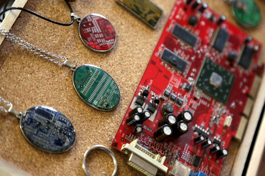 Azután addig járt az üzemvezető nyakára, míg Vonyó Péter ki nem vágott neki néhány kisebb darabot egy számítógép alaplapjából. Ezek lettek a fejében kirajzolódott ékszerek első nyersanyagai. Az áramkördarabkák hamarosan nyakba akasztva is viselhetők voltak, majd újabb igényes ékszerek készültek belőlük.
