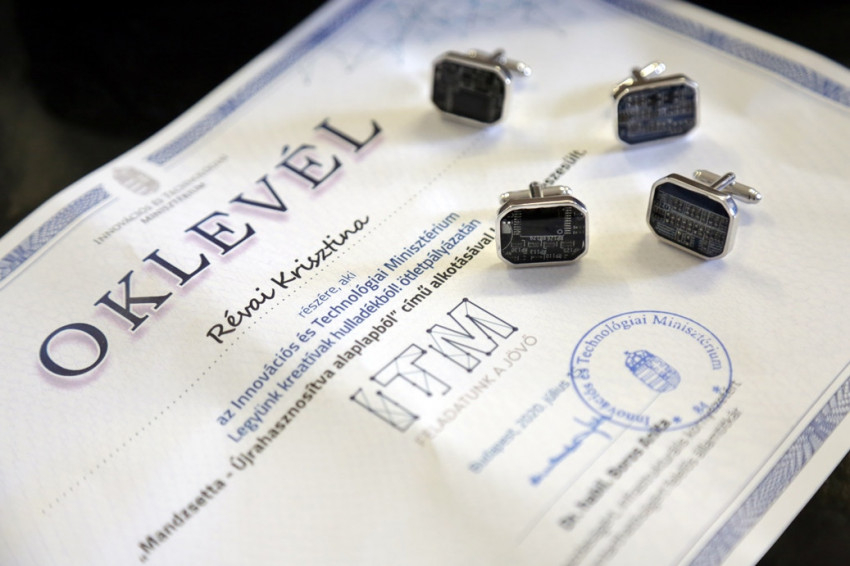 Révai Krisztina ékszerkészítő neve sok helyen szerepelt, miután számítógép-alaplapok újrahasznosításából készített különleges mandzsettagombja első díjat nyert az Innovációs és Technológiai Minisztérium Legyünk kreatívak hulladékból című ötletpályázatán.