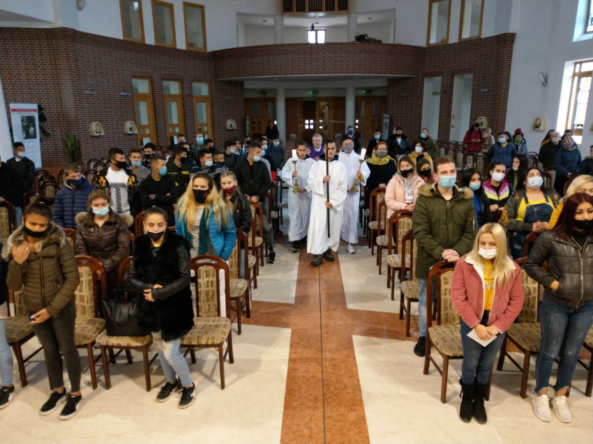 A diákok a járványveszély miatt három csoportban vettek részt a szentmisén, amelyet Kirner Zoltán SDB iskolalelkész mutatott be. Mindenki felírta egy kis papírra az elhunyt hozzátartozója nevét, a neveket tartalmazó borítékokat pedig körmenetben hozták az oltárhoz az osztályok képviselői. A gyerekeket megérintette a közös imának, éneknek, a meghitt pillanatnak az ereje.