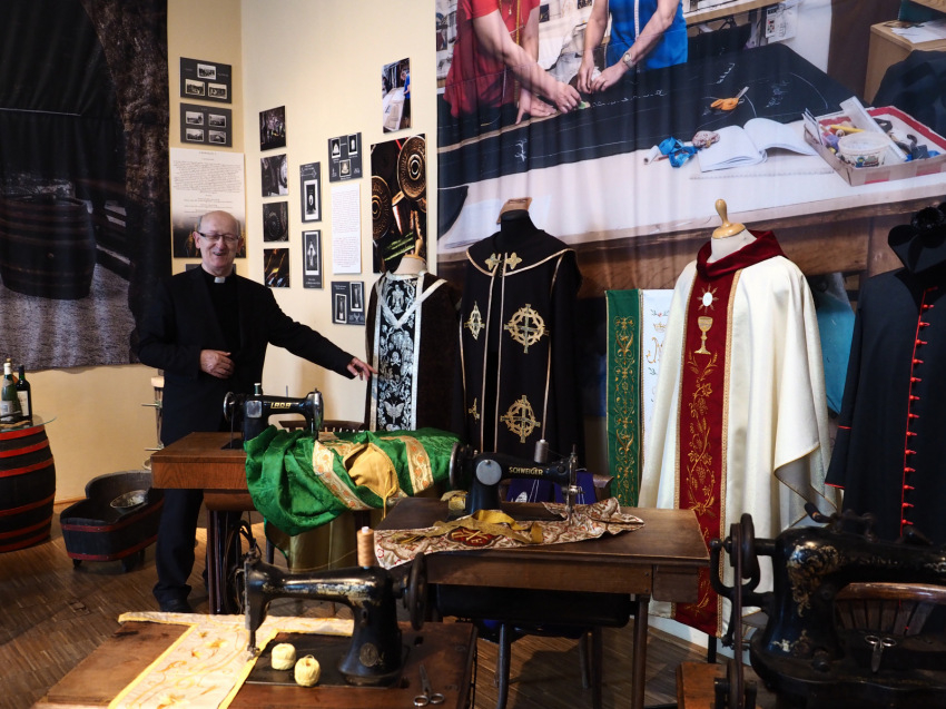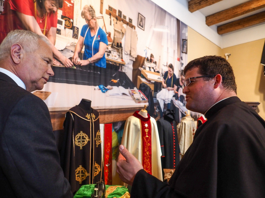 Cséry Gergő elmondta, az ország egyetlen egyházi kézen lévő liturgikus varróműhelye, a Boldog Gizella Liturgikus Varroda tevékenységei közé tartozik a reverenda-, illetve miseruha-készítés, ezek felújítása, átalakítása, valamint az alkotmánybíróság számára talárok készítése is.