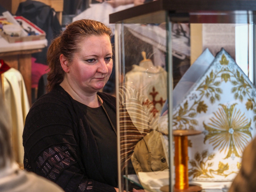 A ritka tematikájú, különleges kiállításon többek között megtekinthetők a varrodában készült liturgikus ruhák, egykor használt, több évtizedes varrógépek, a kézi ostyasütéshez szükséges, finom ötvösmunkával készült sütőtárcsák. A tárlat kapcsolódik a 2020-as Nemzetközi Eucharisztikus Kongresszushoz is, hiszen a számvevőségen a liturgia legfontosabb eszközeit készítik.