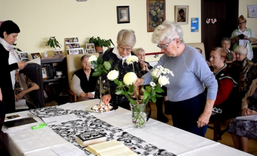 A megemlékezőket Nagy Andrea, az idősotthon vezetője köszöntötte, majd felolvasták azoknak az egykori lakóknak a névsorát, akik az idén távoztak el a közösségből: „Kiss István bácsi márciusban, Nagy Margit néni áprilisban, Szabó Gyöngyike néni májusban, Német Rózsika néni és Szőllősi Ilike néni augusztusban, Thom Marika néni és Mihálka Magdi néni szeptemberben, Veres Zsuzsa néni és Újpalotai Margit néni októberben. Emlékük legyen áldott.” Minden név elhangzásakor a jelen lévő hozzátartozók egy-egy szál fehér virágot helyeztek a feldíszített asztalon elhelyezett vázába, együtt alkotva meg az ünnepi csokrot, ami mellett mécseseket is gyújtottak.
