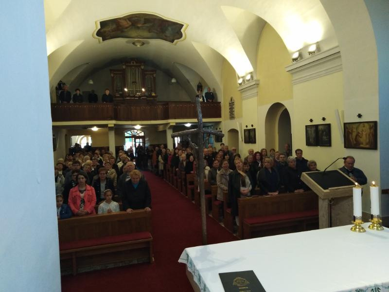 A szentségimádást és a rózsafüzért az ünnepi főpapi szentmise követte, amit Fazakas Márton Zoltán csornai premontrei apát mutatott be. Szentbeszédében rávilágított, az öregséggel csak akkor kezd el igazán foglalkozni az ember, amikor már nemcsak tudja, hanem érzi is hajlott korát, a test korlátait. Azonban az életnek az öregségben is megvan a maga szépsége – hangsúlyozta Fazakas Márton Zoltán, aki az idősek mellett a betegekről és a szenvedőkről is külön szólt. Vajon kibe és mibe tud szenvedés, betegség idején kapaszkodni az ember? Senki másba, mint a keresztjét hordozó Jézusba és a Fájdalmas Anyjába, aki még a kereszt alatt is, halott gyermekét tartva ölében példát adott arra, hogyan kell viselni a szenvedés keresztjét.