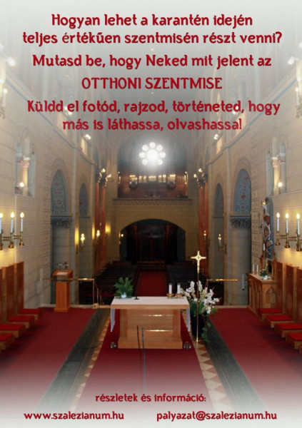 „Hogyan lehet a karantén idején teljesértékűen szentmisén részt venni? Készíts rajzot e témában bármilyen technikával, írd meg történeted, vagy készíts fotót!” – olvasható a főként az ifjúságot megszólító pályázati kiírásban.
