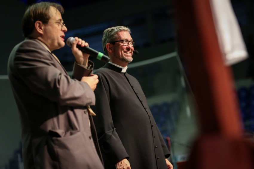 A színpadon egy kanadai pap, Graham Keep beszél a misszióról és ennek kapcsán a kanadai és a magyar viszonyok hasonlóságáról. Ott is magas a magukat katolikusnak vallók, ám templomba nem járók aránya: a 450 ezres egyházmegye lakosságának mintegy nyolcvanöt százaléka ilyen. – Feladatunk, hogy kapcsolatba kerüljünk velük, mondja, hogy – mint Jézus példabeszédében szerepel – kimenjünk az utcára, és meghívjuk őket a lakomára. A plébániák megújulása is csak a Szentlélek által lehetséges.