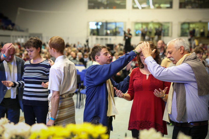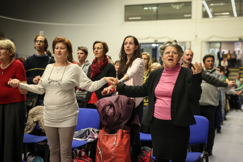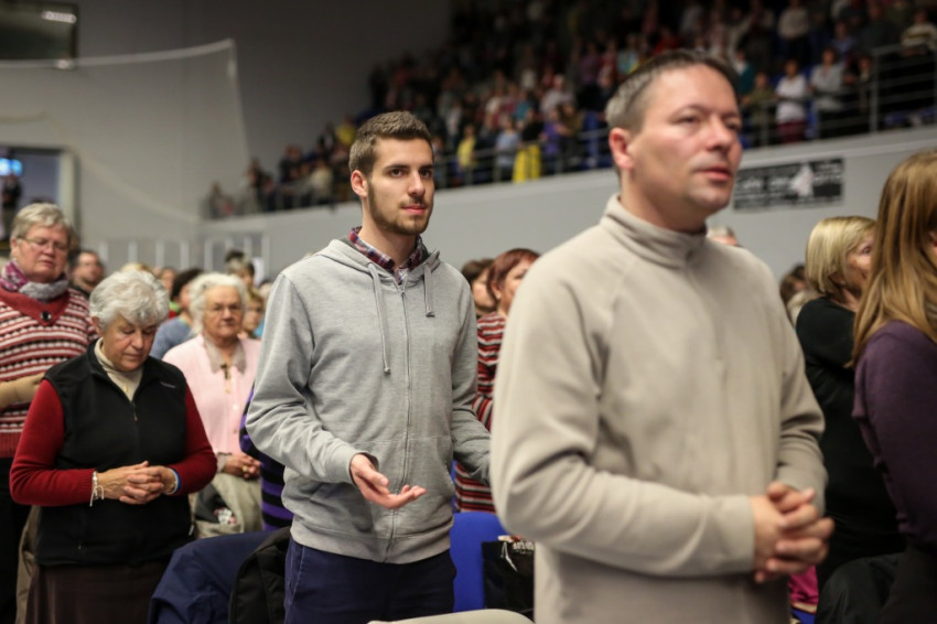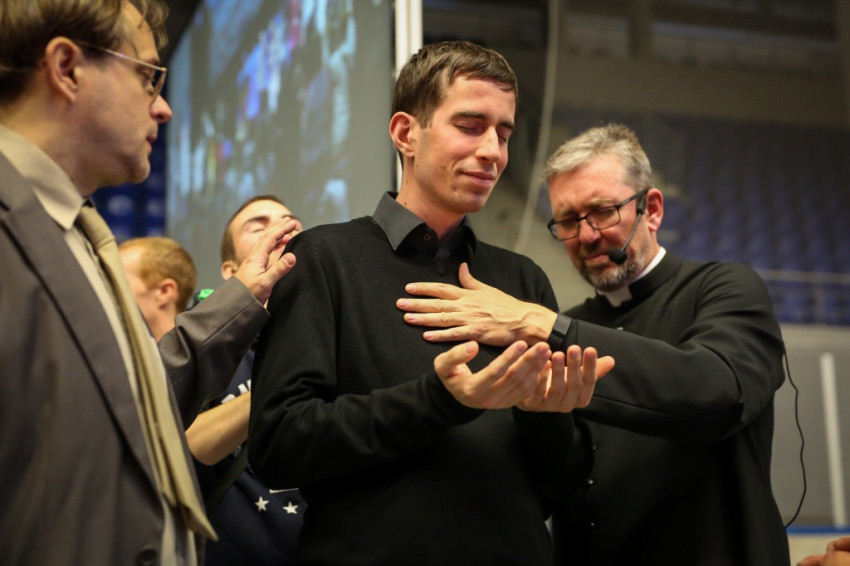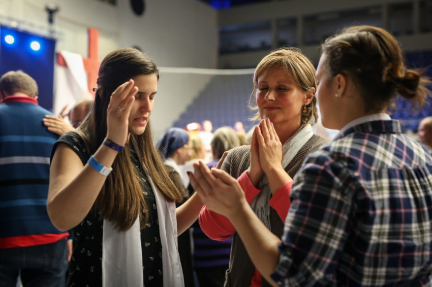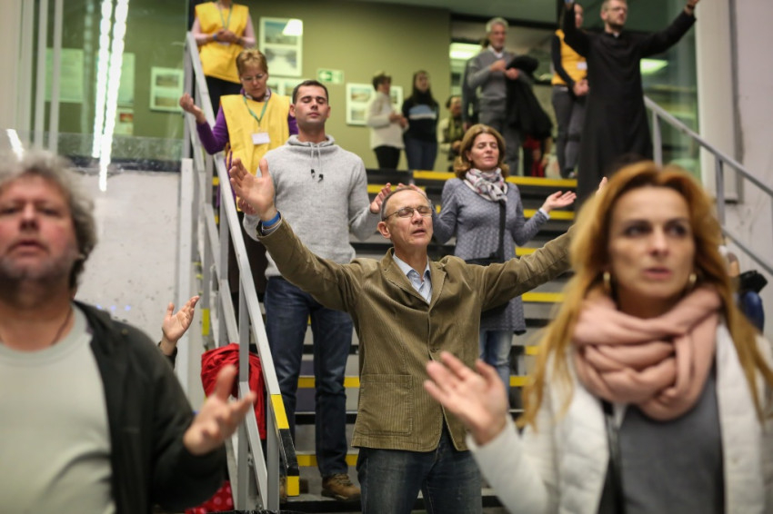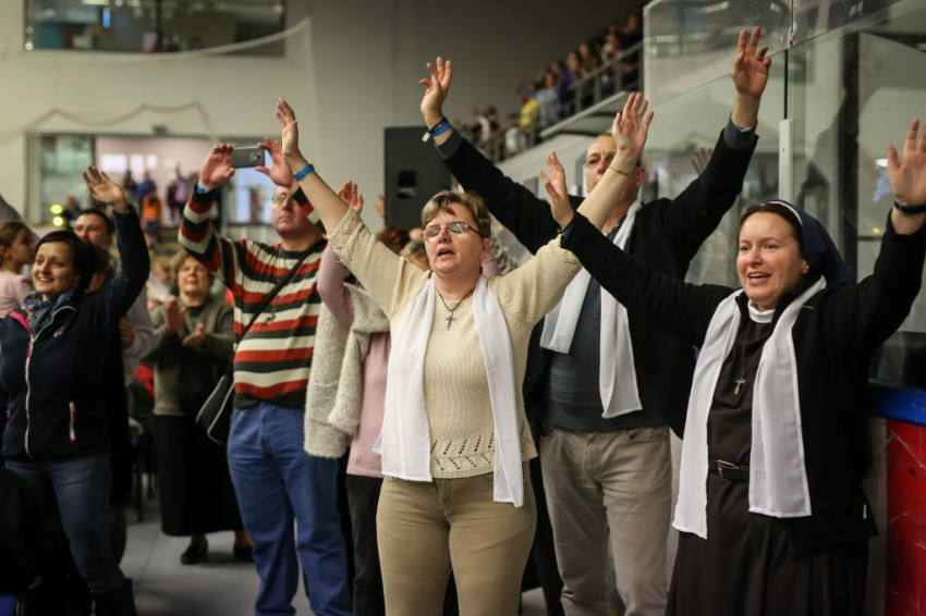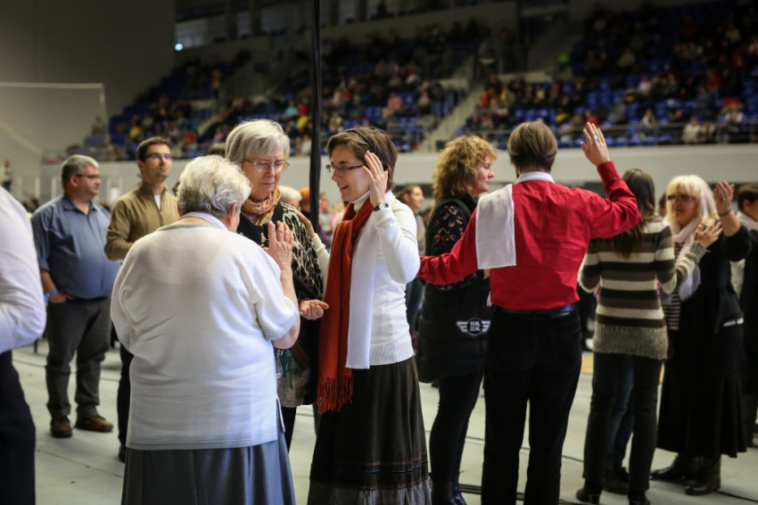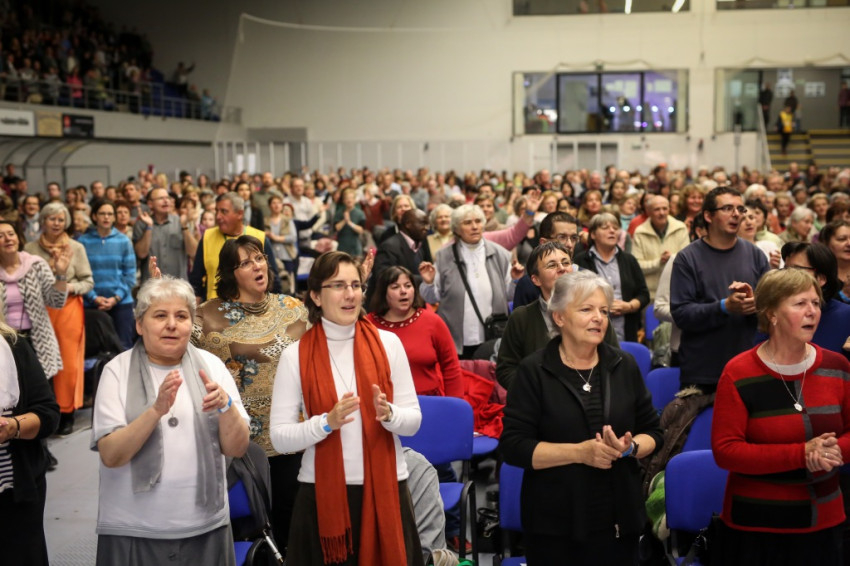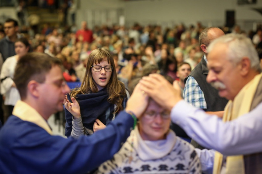 Az előadás után mindenki feláll, és a kezek is felemelkednek. Imapárosok állnak össze, és egykettőre hosszú sorok alakulnak ki az imájukat kérőkből. A színpadról pedig a Szentlélek friss kiáradását kérik. Húsz perc múlva aztán előrehívják azokat, akik még nem kerültek sorra, és értük imádkoznak. Mint VI. Pál mondta, sok katolikus karizmái alszanak. Mi fel akarjuk őket ébreszteni, hangzik el. Aztán a karizmatikus megújulás ötvenéves római jubileumáról esik szó, amelyen Ferenc pápa is beszélt, és az derült ki a szavaiból, hogy jól ismeri, sőt belülről ismeri a mozgalmat.