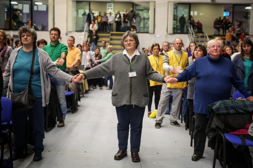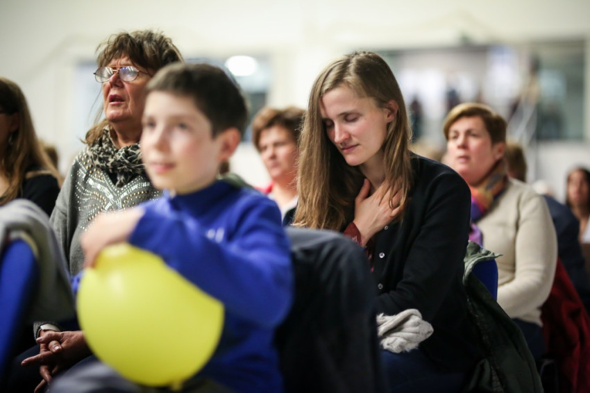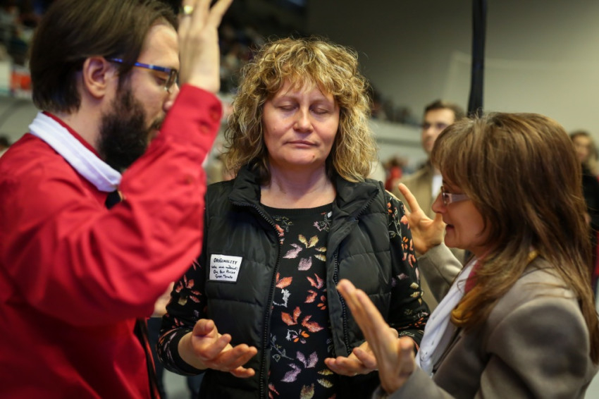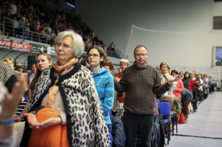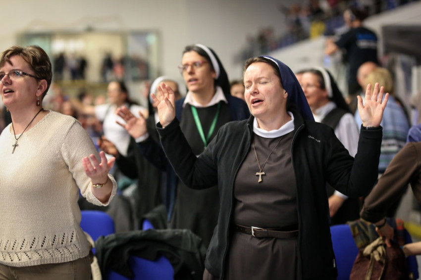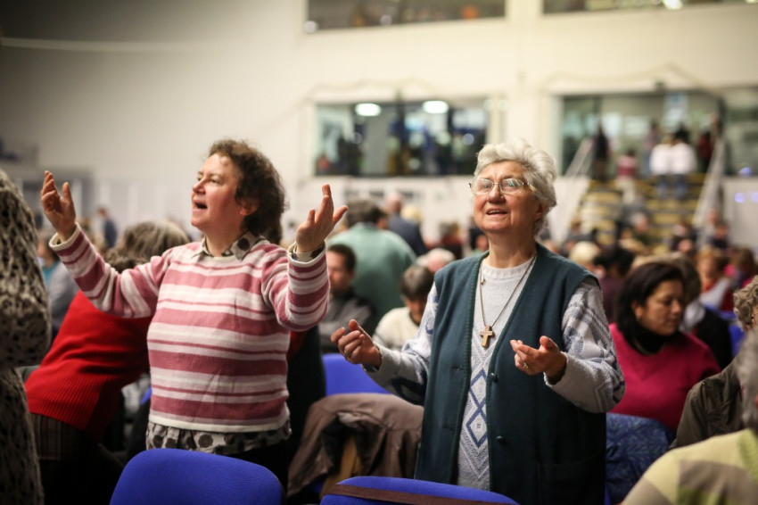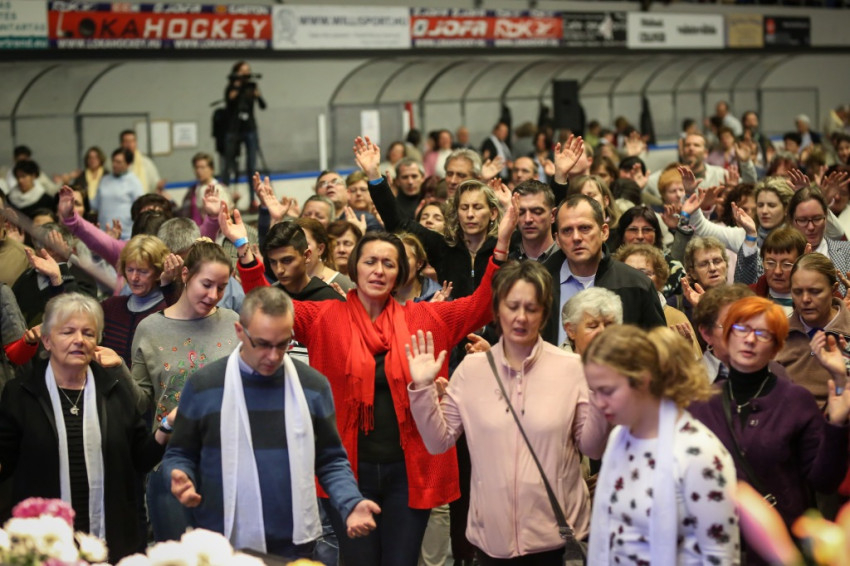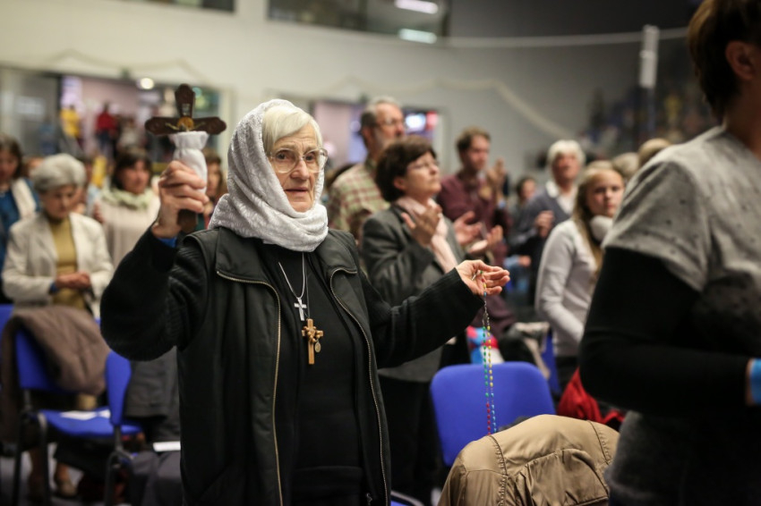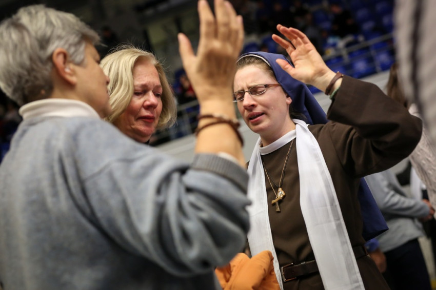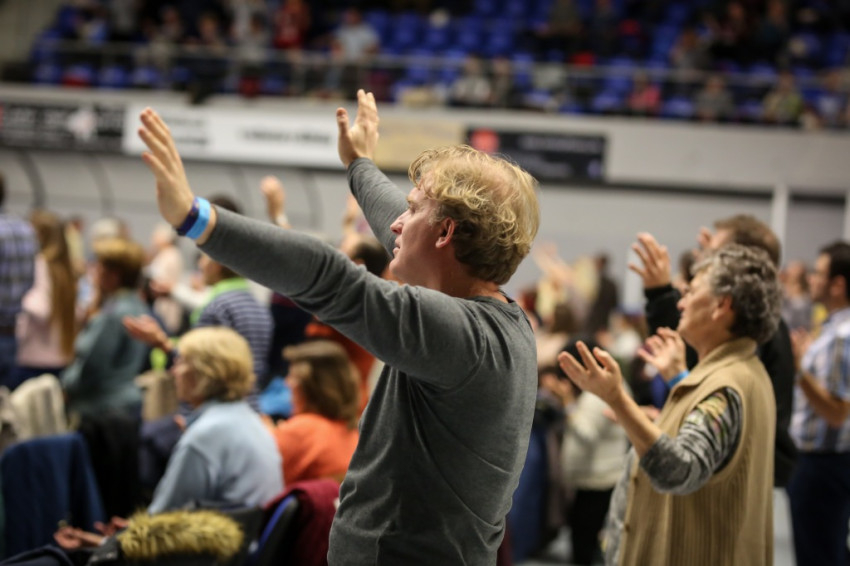 Az előadás után mindenki feláll, és a kezek is felemelkednek. Imapárosok állnak össze, és egykettőre hosszú sorok alakulnak ki az imájukat kérőkből. A színpadról pedig a Szentlélek friss kiáradását kérik. Húsz perc múlva aztán előrehívják azokat, akik még nem kerültek sorra, és értük imádkoznak. Mint VI. Pál mondta, sok katolikus karizmái alszanak. Mi fel akarjuk őket ébreszteni, hangzik el. Aztán a karizmatikus megújulás ötvenéves római jubileumáról esik szó, amelyen Ferenc pápa is beszélt, és az derült ki a szavaiból, hogy jól ismeri, sőt belülről ismeri a mozgalmat.