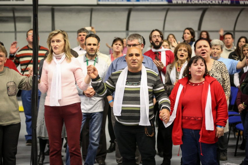 Pár perc múlva Kunszabó Zoltán állandó diakónus lép a mikrofonhoz, hogy bejelentse: a húszéves magyar jubileum alkalmából megalapították a karizmatikus közösségek szövetségét, és 44 közösség már jelezte is a csatlakozási szándékát. Tiszteletbeli elnöknek Varga László püspököt kérték fel – Kunszabó Zoltán felolvassa a levelét, amelyben vállalja a tisztséget, és köszönti a találkozó résztvevőit. Magyarországon körülbelül 130 karizmatikus közösség van, mondja a diakónus, és még jó néhány a határokon túl. A szövetséghez csatlakozók és az érdeklődők képviselői mécseseket kapnak, az oltár elé vonulnak vele, és elhelyezik őket a Kárpát-medence térképén. – Máris tűzbe borult az ország – örvendezik Kunszabó Zoltán, majd mindenkit arra kér: ölelje meg a mellette állót, és mondja neki azt: „Testvérek vagyunk, egyek vagyunk.”