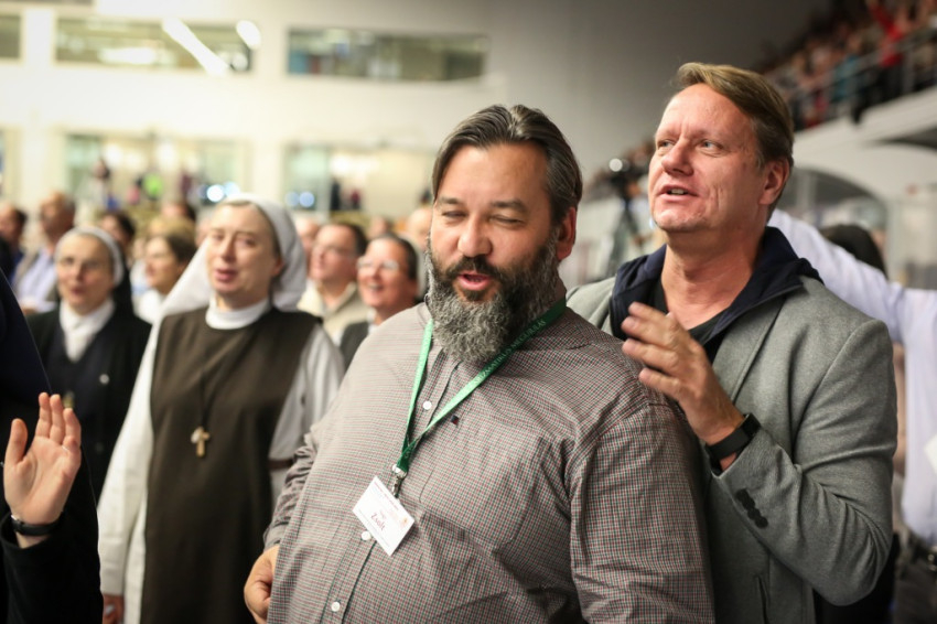 II. János Pál azt mondta: az Egyház intézményes és karizmatikus egyszerre, XVI. Benedek azt, hogy Szentlélek nélkül Egyház sincsen. Jézus teljes küldetése az, hogy a Szentlélekben kereszteljen meg bennünket. Próbáljunk Máriára hasonlítani, aki engedelmes volt, de kérdezni is mert, és jelen lehetett Jézus életének minden fontos állomásánál. A feltámadásánál is, majd a mennybemenetel után a Szentlélek kiáradásakor. A tanítványok akkor kitárták az ajtókat, és elvitték Jézus jelenlétét a világba. Az Úr valami újat akar ma itt tenni. Mindent újjá akar teremteni. Engedjük, hogy megtegye.