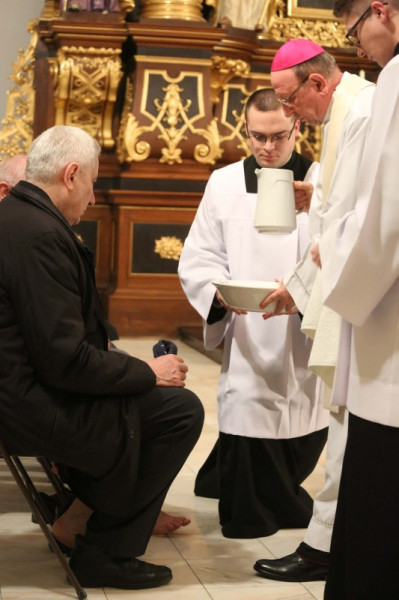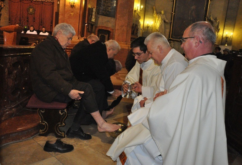 A homília után a lábmosás szertartásához a főpásztor leváltotta miseruháját, egyszerű vászonkendőt kötött maga elé, és az oltár előtt megmosta a város képviselőtestületeiből érkezett tizenkét férfi lábát. Ezt követte a hívek könyörgése.
