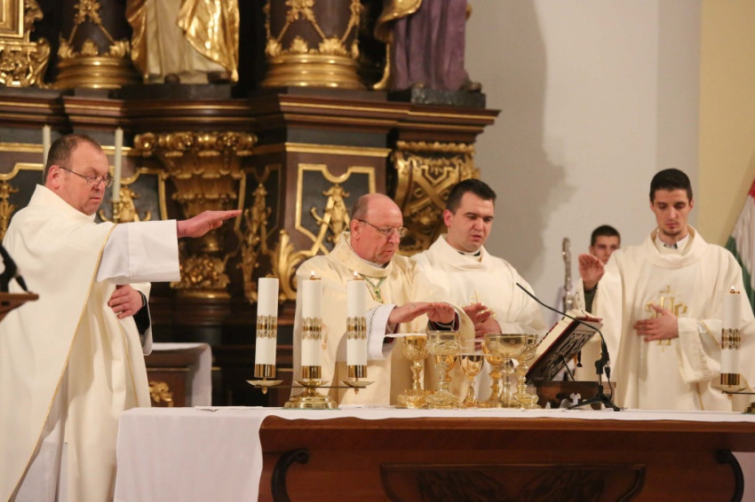 A pécsi Szent Péter- és Szent Pál-székesegyházban Udvardy György megyéspüspök mutatott be szentmisét az utolsó vacsora emlékére.