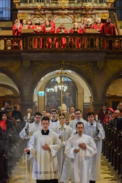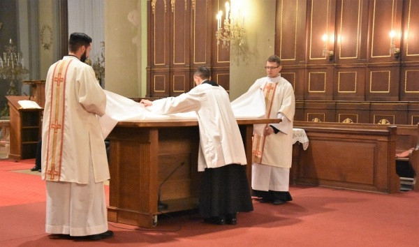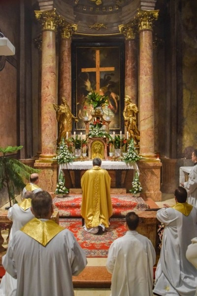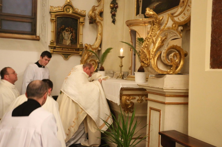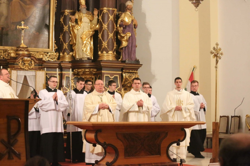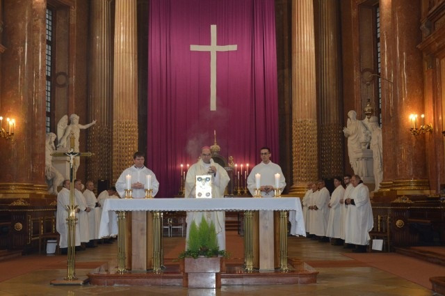 Jeremiás siralmai és a zsoltárok szavai megelevenedtek. A kispapok és hívek imáját Bak Ádám diakónus és Korb Tamás vezette, az esti zsolozsma egyre mélyebbre vezette a virrasztani maradt híveket a nagyhetet megnyitó éjszakába.