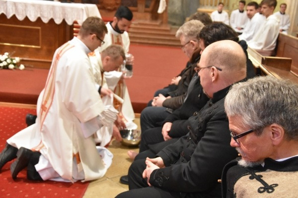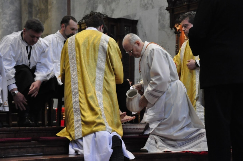 A templomban majdhogynem több volt az ünnepi ruhába öltözött pap, mint a hívő. A Szent Liturgia és az azt követő lábmosási szertartás a szolgálattevők ünnepe volt. Azoké, akik „Krisztus fölséges lealázkodását utánozzák” – ahogy az évente csupán egyszer felhangzó liturgikus mondat is szólt. Hiszen Krisztus „saját fölséges lealázkodásával az alázatosság mértékére tanított meg minket: és tanításával tudtunkra adta, hogy az utolsókból az első lesz”. Majd a lábmosás aktusát végző apostoli kormányzó könyörgött: „add, hogy mindenkor megmosdjunk könnyeinkben és megtisztuljunk tisztító kegyelmed világosságával”.