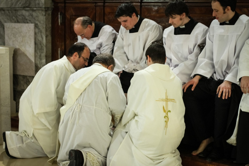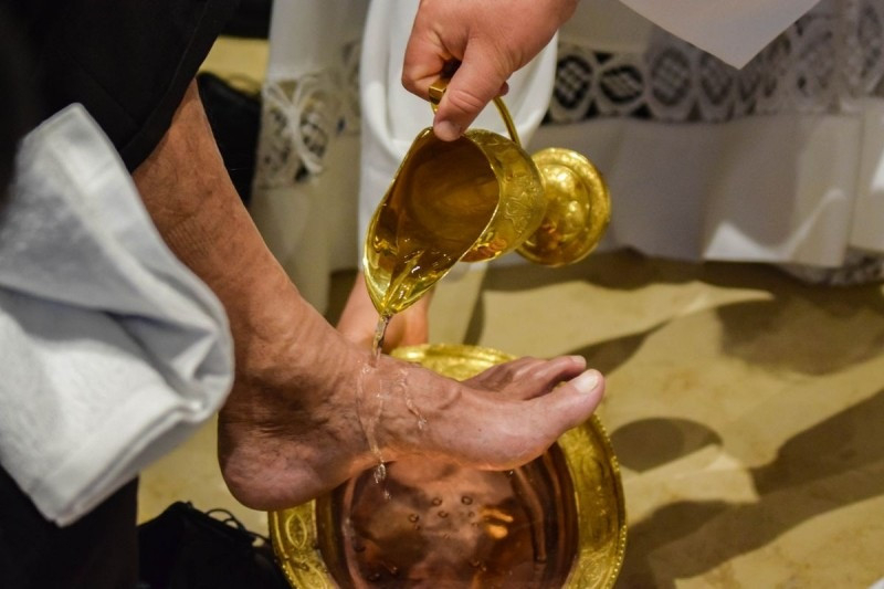 A szentbeszéd után a főpásztor az utolsó vacsora eseményeire emlékezve – Jézushoz hasonlóan – megmosta tizenkét férfi lábát.