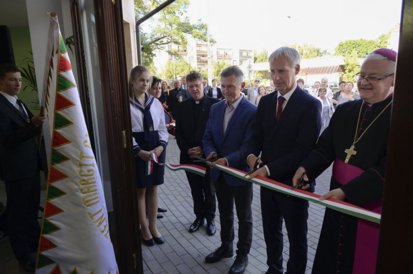 Az ünnepségen felszólalt Bencsik János, a Tatai-medence országgyűlési képviselője is, aki a város katolikus oktatását a kezdetektől támogatta. Újjászületett az egykori születések háza – emelte ki beszédében. „Több tízezren látták meg a napvilágot egykor ezen intézmény falai között, ami a szemünk láttára kezdett összeomlani. Óriási eredmény, hogy a mindannyiunk számára fontos épület a tudás születésének házaként működhet tovább.” A képviselő elmondta: vannak még hiányosságok az intézmény végleges elkészültéig, még be kell fejezni a jelenleg szerkezetkész aulát és a tornacsarnokot, illetve az udvar rendezését, hogy teljes értékű egyházi iskola jöhessen létre, ami nemcsak a város, hanem a Tatai-medence közösségét is gazdagítja majd.