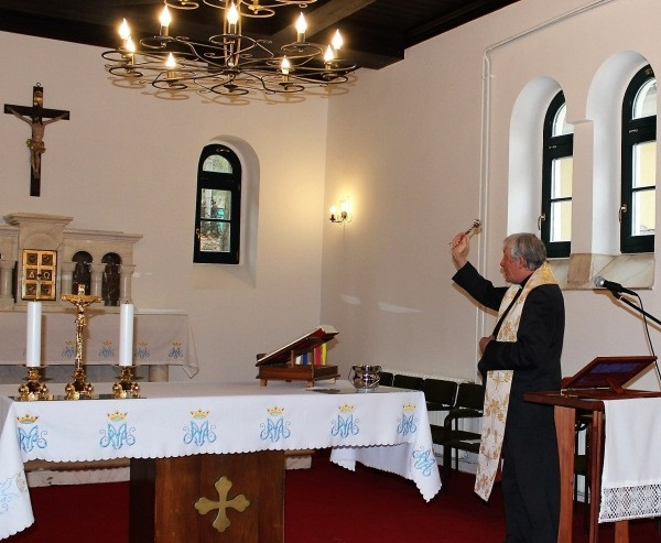 A résztvevőket Stella Leontin címzetes prépost, a máriabesnyői kegyhely igazgatója köszöntötte, majd megáldotta az épületet. A felújítás kapcsán Nagyné Pádár Éva, az intézmény gazdasági igazgatója elmondta, hogy a házban van egy kihelyezett láda, melybe az odalátogatók bedobhatják írásos észrevételeiket. Erre a ládára a következő van felírva: „A dicséret jólesik, a kritika segít.” Így segítették a ház dolgozóit is a lelkigyakorlatokon részt vett vendégek hozzászólásai, mert nemcsak dicséretük, hanem építő jellegű kritikáik is jól estek, mert ezekkel felhívták a figyelmet a ház szükséges korszerűsítésére.