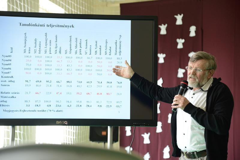 Dienes Béla, az iskola igazgatója előadásában kitért arra, hogyan került látókörükbe a kezdeményezés, mit tettek az intézmény vezetői és a pedagógusok a Sakkpalota program bevezetése és sikeres működtetése érdekében, illetve milyen hatással volt az iskola képzési rendszerének bővítésére ez az innováció. Az igazgató előadásához kapcsolódott Horváth József mérésértékelési szakértő tájékoztatója, a szakértő egy kontrollcsoport és a Széchenyi-iskola tanulóinak méréseredményein keresztül mutatta be, hogy a „sakkpalotás” gyerekek teljesítményében milyen mértékű fejlődés tapasztalható.