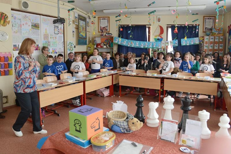 A szakmai délelőtt legnagyobb érdeklődésre számot tartó részét azok a mikrotanítások jelentették, amelyeken a pedagógusok – Izsóné Kicsák Éva, Pállné Kiss Andrea és Stelénné Sárközi Edit – bemutatták az érdeklődőknek, hogyan építhetők be a képességfejlesztő sakkprogram módszerei a matematika és az idegen nyelvek oktatási folyamatába alsó tagozaton.